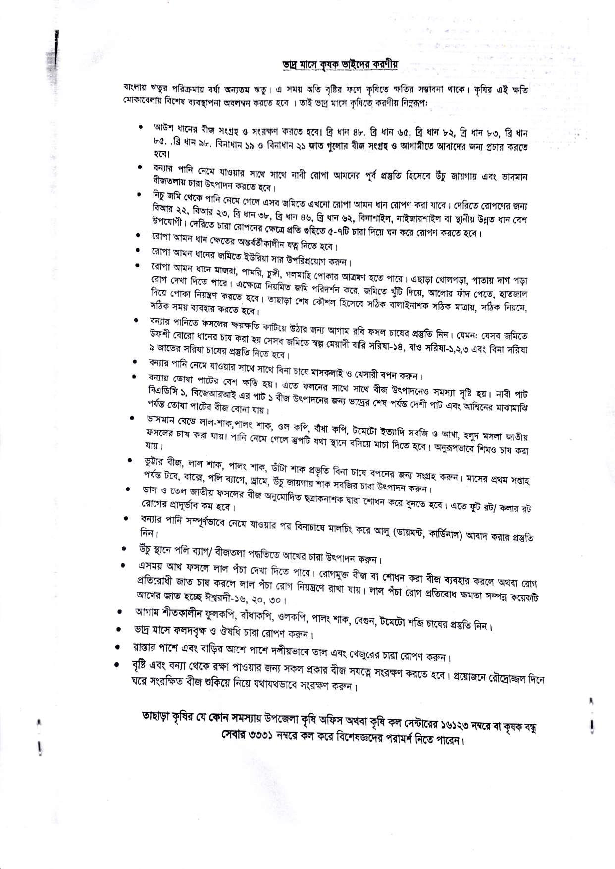 | ৮ | ভাদ্র মাসে কৃষক ভাইদের করনীয় | | | ১১-০৮-২০২২ | দেখুন |